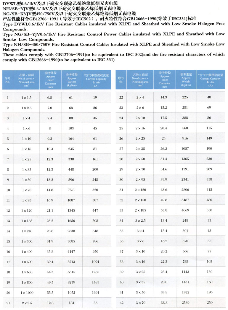 3、交联聚乙烯、聚氯乙烯绝缘护套耐火电力电缆